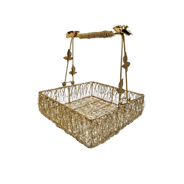 Bring elegance and structure to your gifting with our Golden Square Metal Handle Baskets. Featuring a sleek metallic frame and sturdy square design, these baskets are perfect for luxury hampers, wedding giveaways, festive gifting, and decorative use.